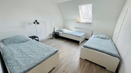 - 2 Zimmer pro Einheit mit Küche Bad und Balkon Platz für 3 bis 5 Personen, Je 5 Einzelbetten Bad mit Badewanne, Waschmaschine vorhanden Küche ausgestattet mit:Kühlschrank, Mikrowelle, Backofen, Herd, Geschirr, (Teller, Tassen, Gläser), Besteck (Messer, Gabeln, Löffel), Töpfe und Pfannen, Esstisch mit Stühlen 1x TV. Hand- & Duschtücher bitte selbst mitbringen (werden nicht bereitgestellt)